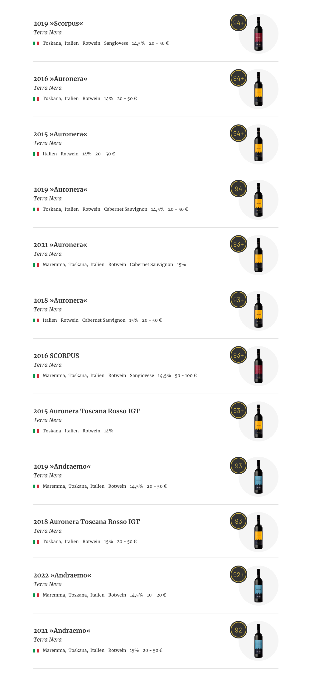 Falstaff: AURONERA, SCORPUS und ANDRAEMO wurden mit 94+, 94, 93+, 93 und 92 Punkten als Falstaff Favorites ausgezeichnet.