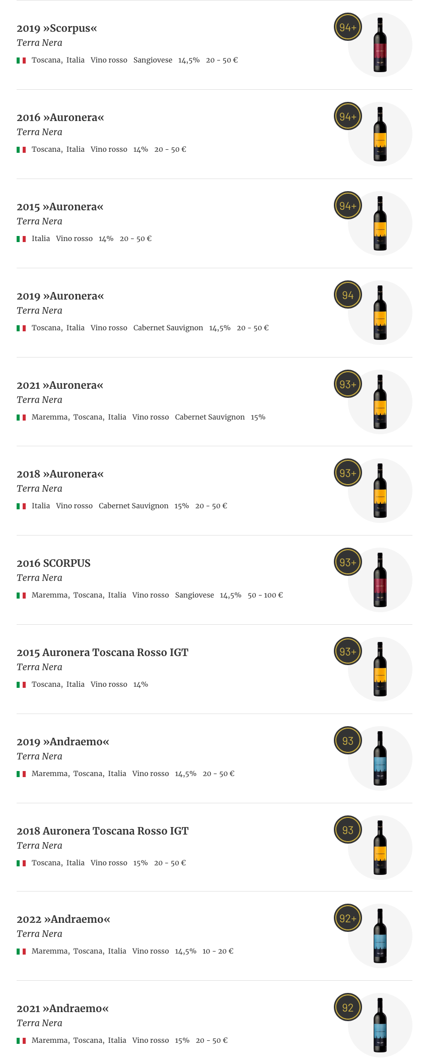 Che toscano! I suoli di scisto nero, unici e rari, della Maremma danno vita a una cuvée di Sangiovese di grandezza sublime. Molto cassis, ancora più mora, poi cioccolato fondente, liquirizia e erbe di bosco. Sempre accompagnato da una nobile freschezza eterea, con accenni di menta marocchina e foglie di eucalipto nel retrogusto. Nonostante una struttura imponente, ha tannini molto fini al palato. Semplicemente: Wow! Dall’ingresso al finale.